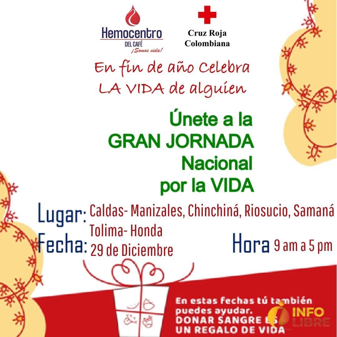 La Red de Bancos de Sangre de la Cruz Roja Colombiana hace un llamado a la donación de sangre segura y salvar miles de vidas que necesitan de este componente vital; a la fecha han sido transfundidos 356.434 pacientes, los cuales recibieron 1.330.856 hemocomponentes (Glóbulos Rojos, plasma , plaquetas, crioprecipitados); así mismo la demanda de estos componentes se incrementa en los meses de diciembre y enero debido a la accidentalidad vial, el número de personas quemadas con pólvora, incremento de cifras de lesiones por riñas y programación de cirugías y procesos oncológicos.
